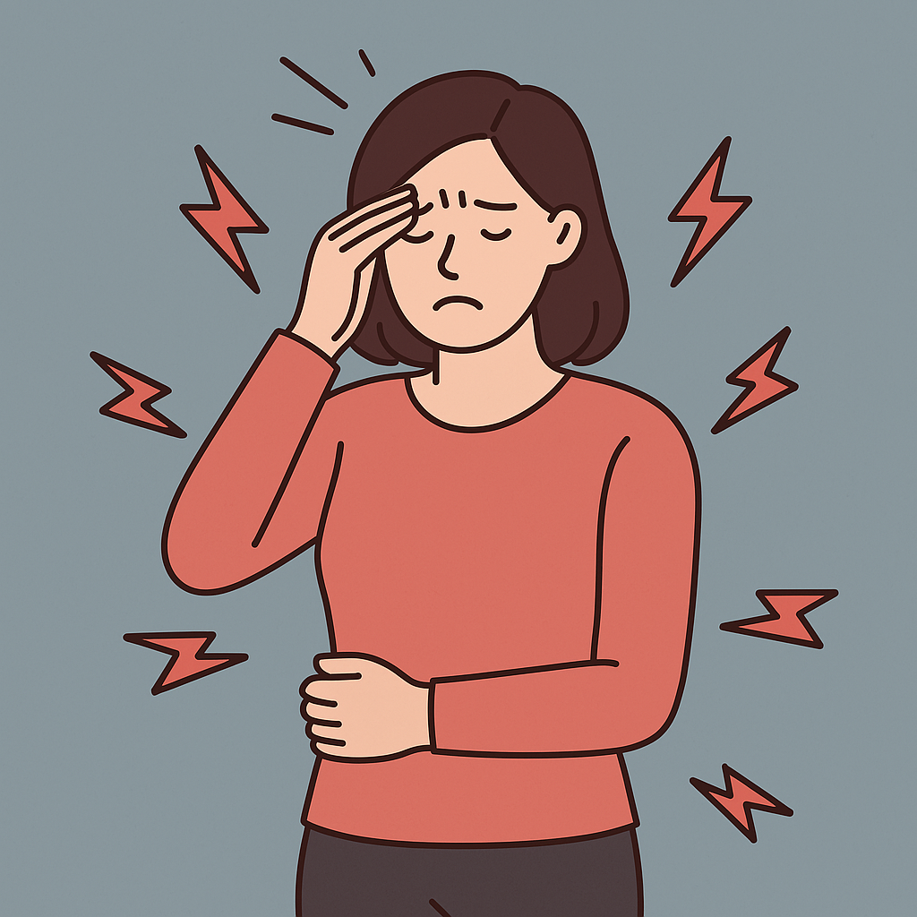 - 편두통: 머리 한쪽이 지끈거리고 메스꺼움, 빛에 민감해짐.